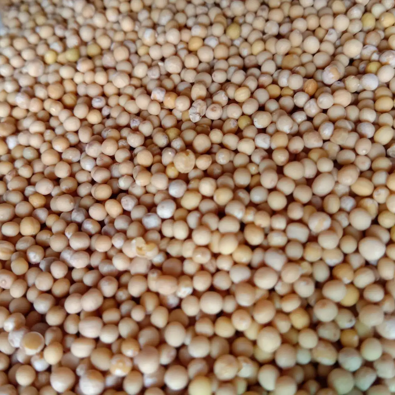 白芥子表面灰白色至黄白色。用放大镜观察,表面可见细微的网纹,一端有暗色小点状种脐。破开,可见内含黄白色折叠的子叶,富油性。无臭,味辛、辣。以粒均匀、饱满、色白者为佳。
