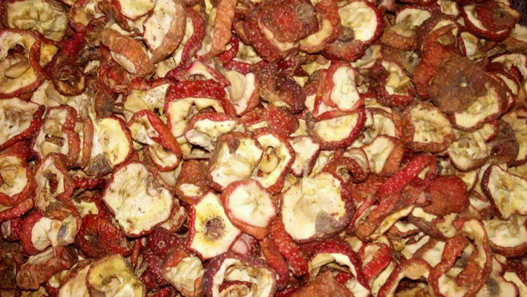 干山楂中富含胡萝卜素、钙、山楂素等三萜类烯酸和黄酮类等有益成分。能舒张血管,加强和调节心肌收缩力,增大心室运动振幅及冠状动脉血流量,可预防心血管疾病。