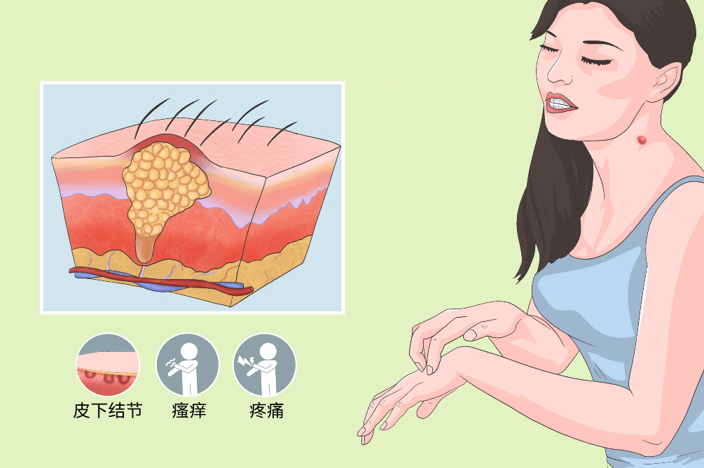 目前都有什么症状?(如皮下硬性结节、瘙痒等)