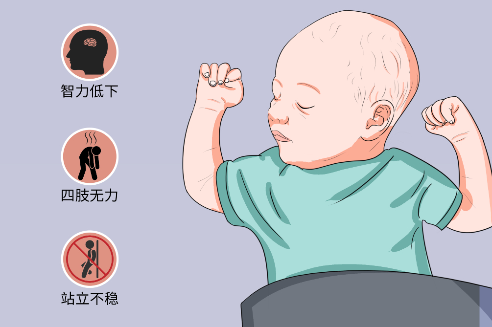 随生长发育至学龄期患儿出现智力低下,部分患儿以学习成绩差就诊,患儿的智力程度低于正常同龄儿童。主要表现为学习能力差,接受知识慢,反应速度慢。