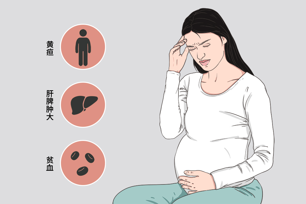 孕妇出现贫血、黄疸、肝脾肿大等表现,以及全身虚弱、头昏、发热等症状,应及时就医。