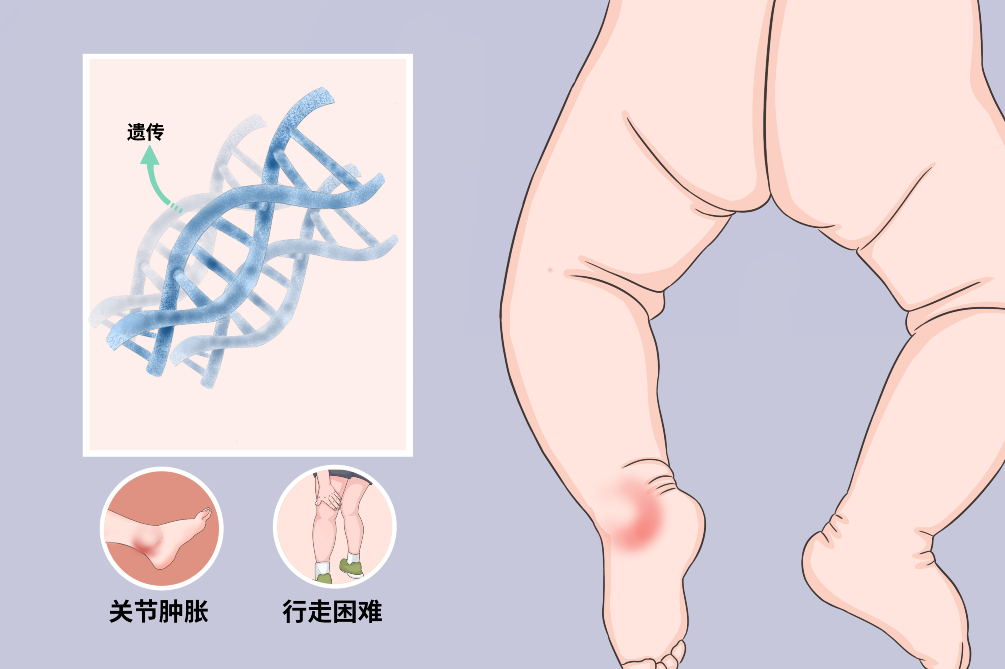 关节肿胀主要发生于3~8岁的儿童患者,一般早期症状为手指根部的肿胀、畸形,皮肤表面无红肿和疼痛。逐渐出现下肢的关节肿胀,好发于膝关节、髋关节、腕关节、足趾关节等。