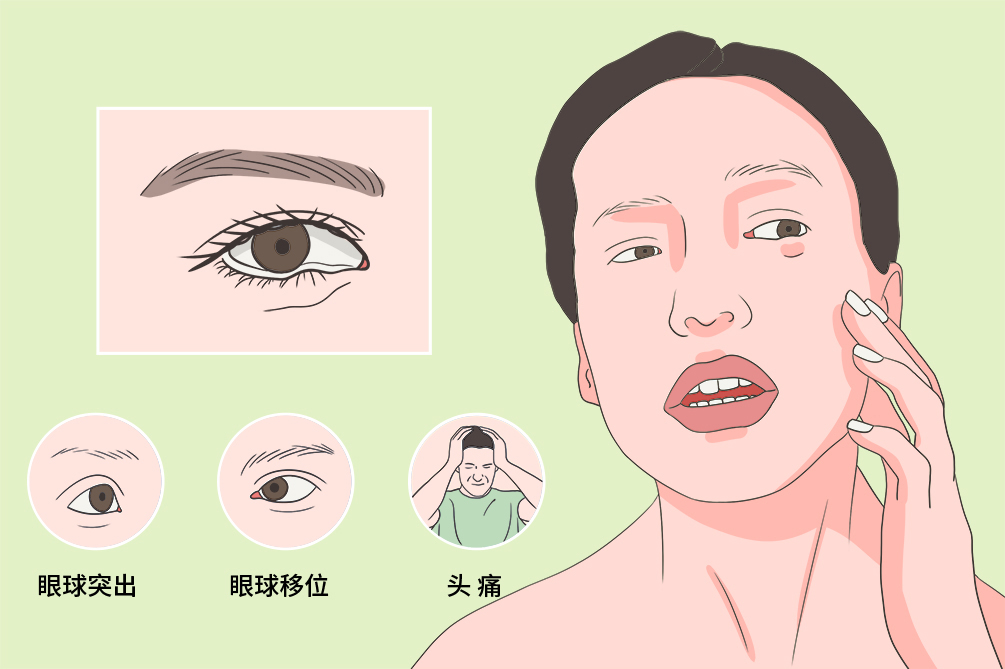 患者出现眼眶肿块、隆起、疼痛、眼球突出、移位、眼球搏动、负压性头痛、复视等。需要眼科检查,进行眼B超、眼眶CT或者MRI检查。并且眼眶黏液囊肿要与鼻窦恶性肿瘤鉴别。