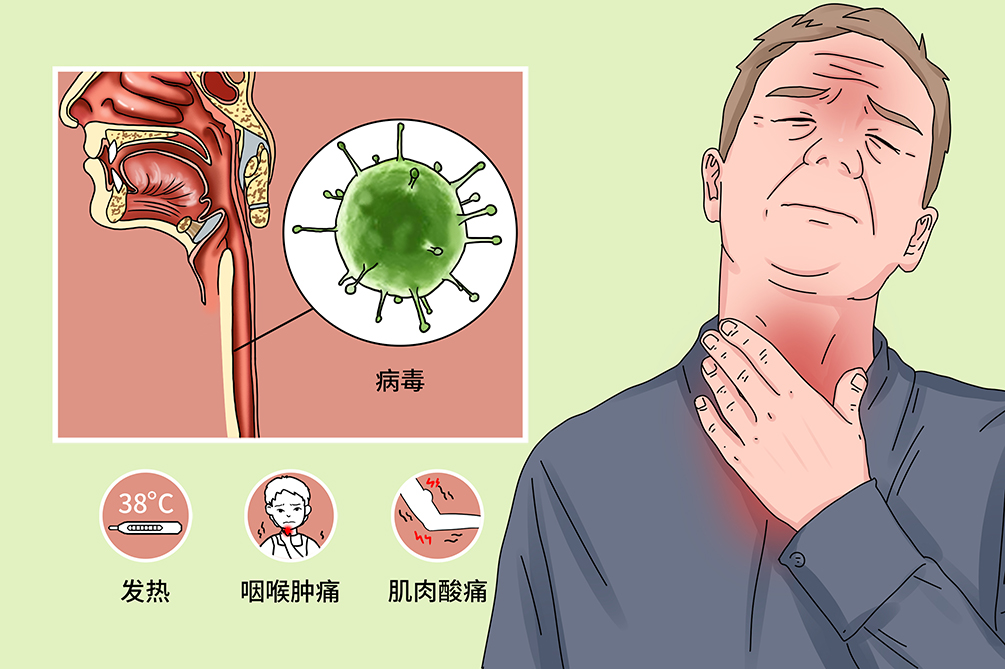 出现胸骨后疼痛,部分伴全身酸疼、咽喉疼等上呼吸道感染症状。