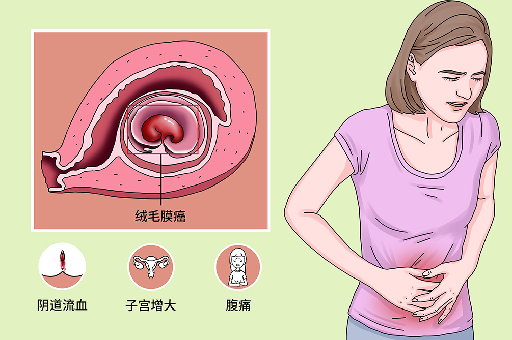 如育龄妇女出现不明原因的不规则阴道出血、腹痛时应前往医院妇产科进行就诊,绒毛膜癌通过血清HCG测定、超声检查、X线胸片等检查明确诊断。