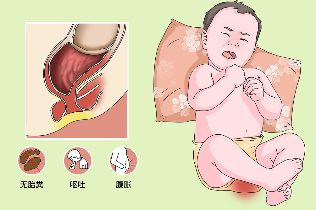 患儿出生后24小时无胎粪或者仅有少量胎粪从尿道或会阴瘘口挤出。