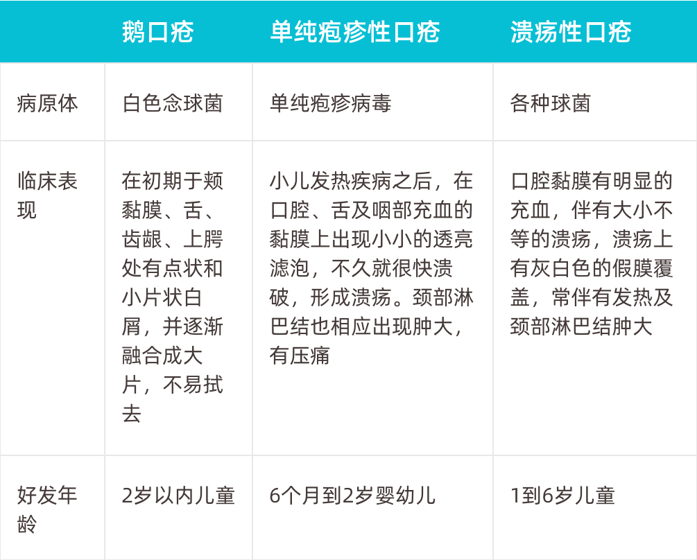 小儿口疮多发生在高热、急性传染病、腹泻之后,以婴幼儿多见,以口颊、唇边、上颚、齿龈等处发生溃疡为特征,主要表现为口腔黏膜出现疱疹、红肿、糜烂等症状。