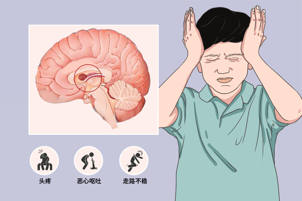 患者多见头痛、呕吐、走路不稳等症状,婴幼儿可见头颅增大和前囟压力增高。