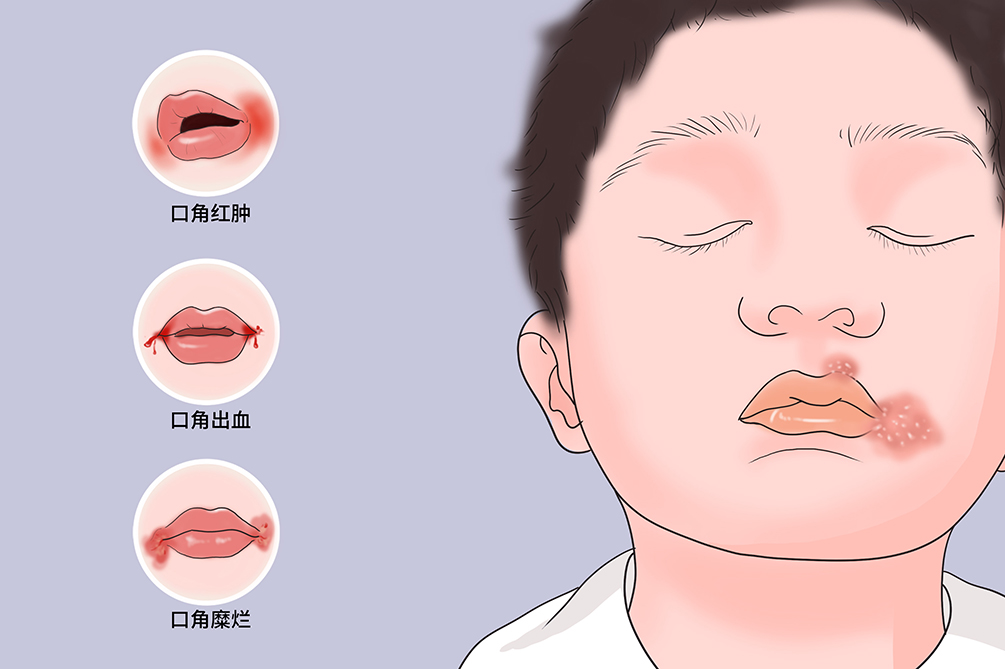 主要表现为口角上发红、发痒,而后上皮开始脱落,逐渐形成糜烂、浸渍或裂痕,张嘴时就特别容易拉裂出血,同时也影响吃饭和说话。