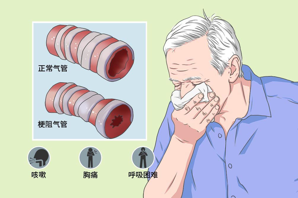 慢阻肺也是好发于长期吸烟的中老年男性,患者长期咳嗽、胸闷、呼吸困难,结合患者病史、体征以及肺功能检查可以进行鉴别诊断。