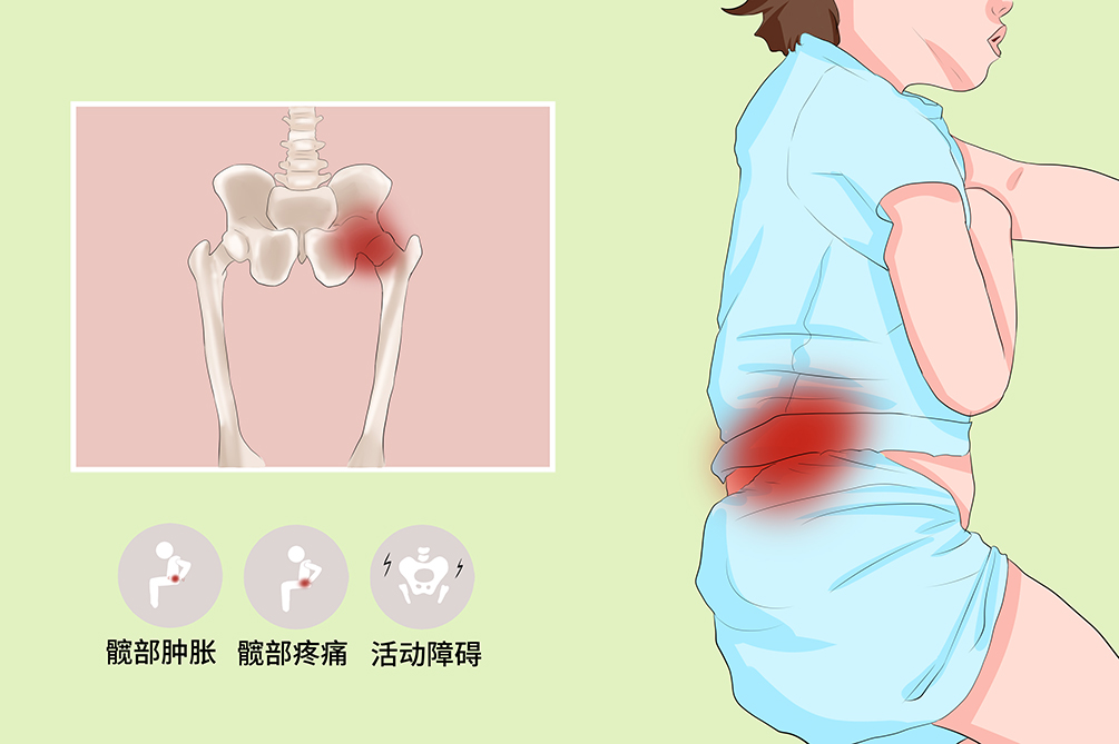 单侧髋关节或腹股沟疼痛,伴有肿胀,部分患者可表现为大腿中部或者膝关节疼痛,运动时疼痛加重,很快出现跛行,数日内不能负重行走而卧床。
