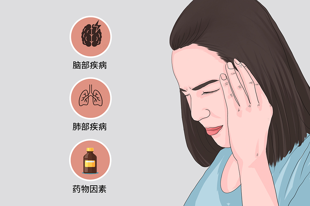 是本病的常见的致病因素,可由于脑部疾病如脑外伤、脑血管疾病、脑肿瘤、脑炎、脑膜炎等抑制呼吸中枢,从而出现呼吸浅慢的表现,需积极治疗脑部疾病才能控制症状。