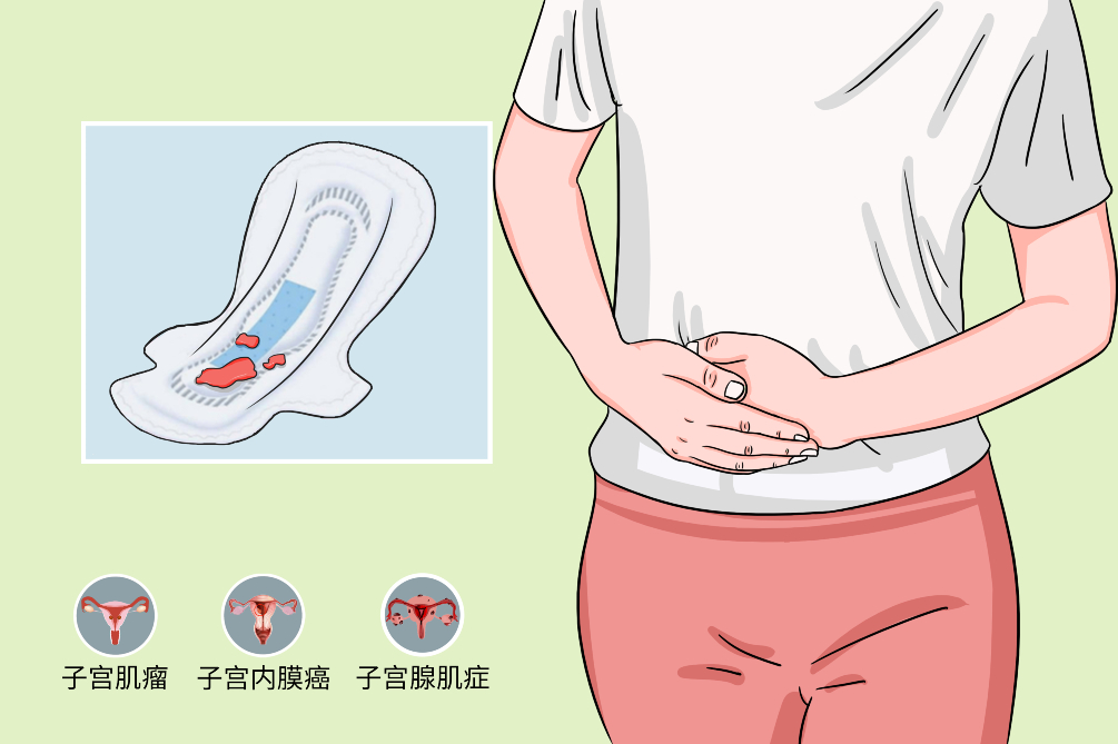 子宫肌瘤病人肌瘤向肌层突出,被撑大的子宫收缩能力不好,易造成月经血块过多。