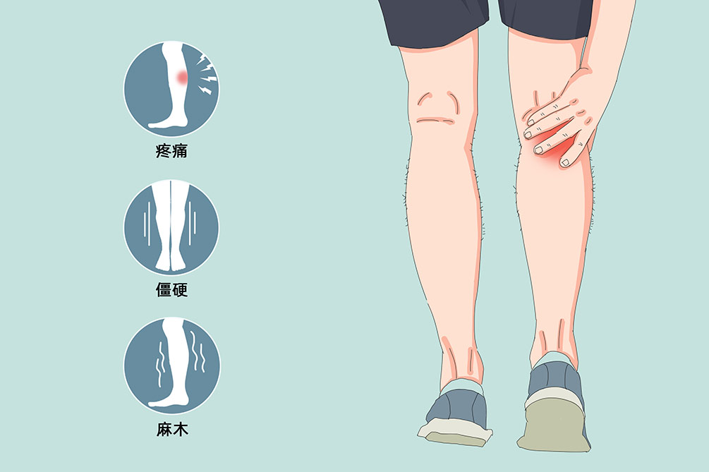 非疾病因素导致的腿抽筋主要发生于小腿腓肠肌及比目鱼肌,可连带有大腿及足底肌肉的疼痛、僵直、麻木症状,持续时间通常在几秒钟至几分钟。