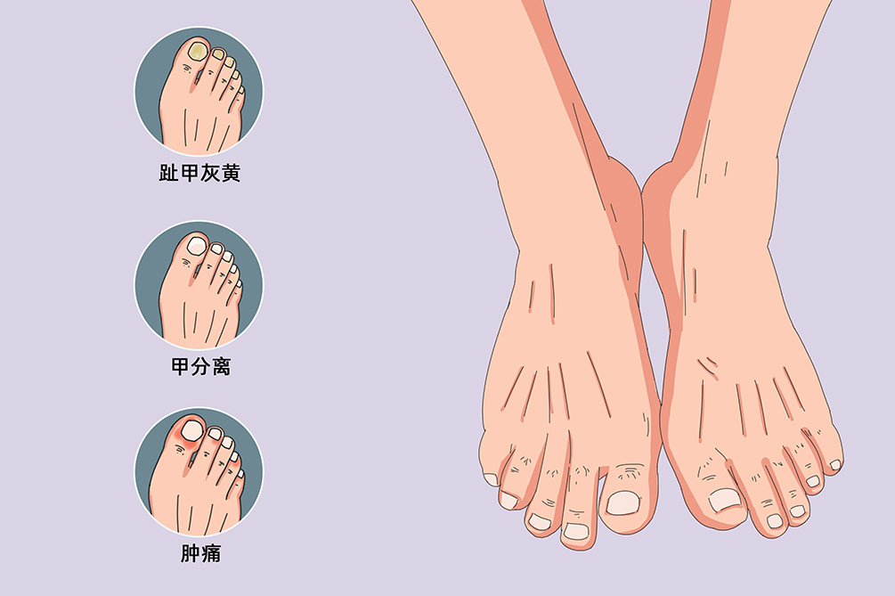 脚趾甲增厚根据不同的病因,可出现不同的伴随症状。