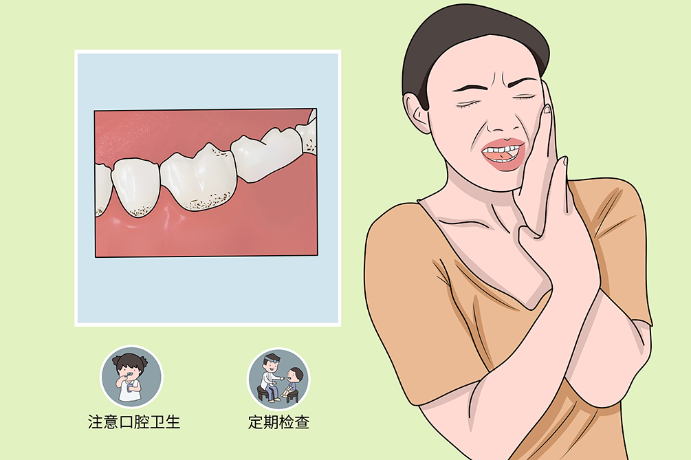 减少对蔗糖和粘性食物的摄入,多吃富含纤维的食物,例如蔬菜、粗粮等。