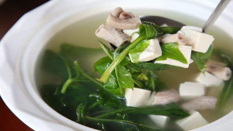 苦菜汤中含有丰富的胡萝卜素、维生素C以及钾盐、钙盐等,对预防和治疗贫血病,维持人体正常的生理活动,促进生长发育和消暑保健有较好的作用。苦菜汤中含有蒲公英甾醇、胆碱等成分,有清热解毒、杀菌消炎的效果。