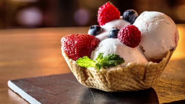 冰淇淋富含优质蛋白质、乳糖、钙、磷、钾、钠、氯、硫、铁、氨基酸、维生素A、维生素C、维生素E等多种营养成分,以及其他对人极为有益的生物活性物质,具有调节生理功能、平衡人体渗透压的功能。冰淇淋的主要营养成分是糖和脂肪,冰淇淋中含有糖类,由牛奶中的乳糖和各种果汁、果浆中的果糖以及蔗糖组成,其中有机酸、丹宁和各种维生素,可以给人体提供所需要的营养物质。冰淇淋所含脂肪主要来自于牛奶和鸡蛋,有较多的卵磷脂,可释放出胆碱,对增进人的记忆力有帮助,脂肪中的脂溶性维生素也容易被人体所吸收。