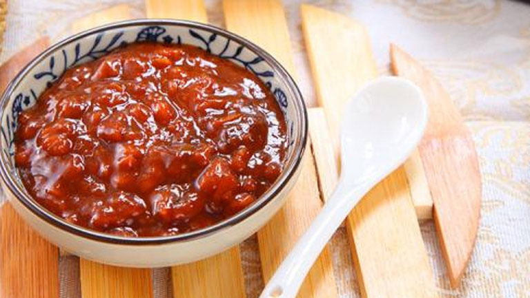 黄豆酱是我国传统的调味酱,用黄豆炒熟磨碎后发酵而制成。黄酱有浓郁的酱香和酯香,咸甜适口,用于醮、焖、蒸、炒、拌等各种烹调方式,也可佐餐、净食等。黄豆酱含盐量较高,应少食,对豆类过敏的人要慎食。