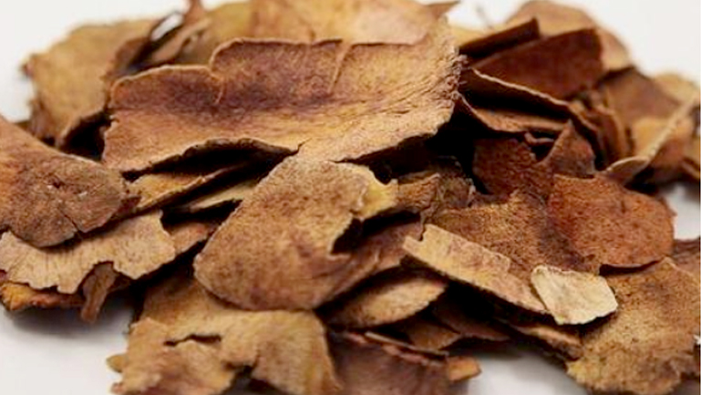 茯苓皮主要含有多糖类、三萜类、甾醇类成分,如羊毛甾烷型三萜、3,4-裂环羊毛甾烷型三萜、β-茯苓聚糖等,有多种药理活性,具有消肿利尿、健脾渗湿、宁心安神等功效。