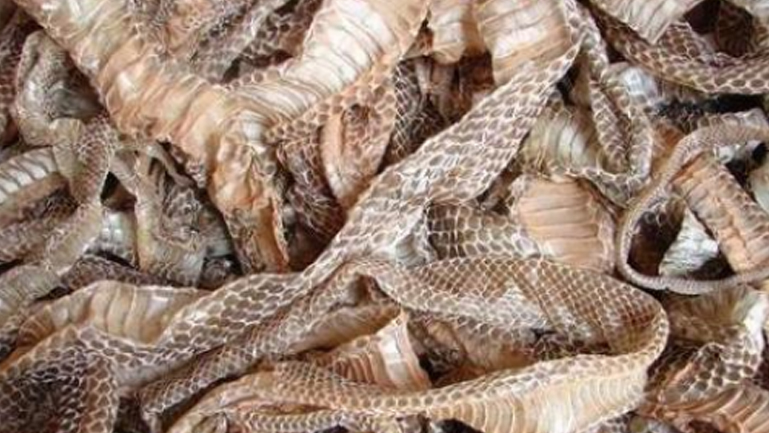 蛇皮的干燥表皮膜含骨胶原、氨基酸、糖原、核酸、氨肽酶及β-葡萄糖醛酸酶、乳酸脱氢酶、异柠檬酸脱氢酶、二及三磷酸吡啶核苷酸黄递酶、酯酶、葡萄糖-6-磷酸脱氢酶、磷酸化酶等物质。