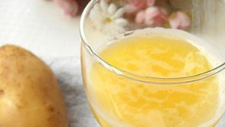 生土豆汁的主要成分为土豆,土豆中含有大量的淀粉、蛋白质、脂肪、纤维素以及丰富的维生素C、维生素A、维生素B1、胡萝卜素、花青素及钙、钾、铁、磷等微量元素,另外还含有核黄素、尼克酸、硫胺酸等成分。