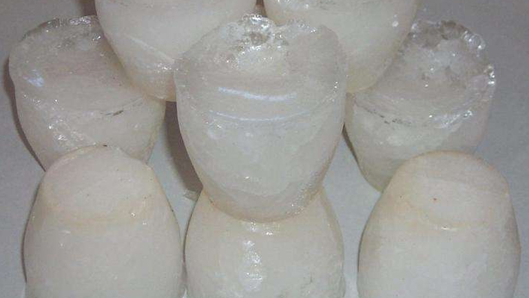 淡秋石多为灰白色或淡红色小方块,表面不甚光滑,无光泽,质硬而脆,味淡,以块整、干燥、无咸臭味者为佳;咸秋石为盆状或馒头状结晶块,洁白或淡黄色,有光泽,质硬,味咸,以色白、整块者为佳。