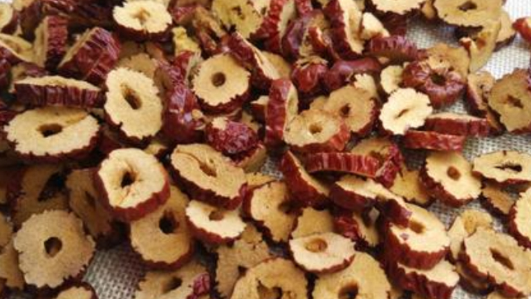 干枣片中的多糖是重要的活性物质,除此以外还含有大量维生素C、核黄素、硫胺素、胡萝卜素、尼克酸等多种维生素,有较强的补养作用,能够补充人体所需营养。干枣片富含钙元素和铁元素,能为人体的骨骼和造血提供原料,可以促进儿童的骨骼发育,预防缺铁性贫血。经常食用干枣片有软化血管的作用,因为干枣片内含有芦丁,能降低血压的功效。另外,还能养血安神,健脑益智,增强食欲。干枣片还可以抗过敏、除腥臭怪味、宁心安神、益智健脑、增强食欲。