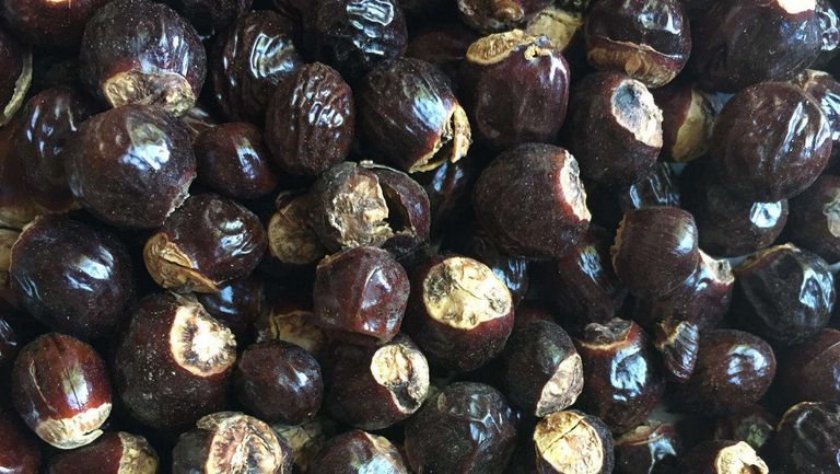 桂圆籽含皂素、脂肪及鞣质等成分,还含三种氨基酸,即2-氨基-4-甲基-5-已炔酸、2-氨基-4-羟甲基-5-己炔酸和2-氨基-4-羟基-6-庚炔酸。桂圆籽能起到理气止痛、止血、收湿等功效,可用于疝气疼痛、外伤出血、疥癣、湿疮等病症。