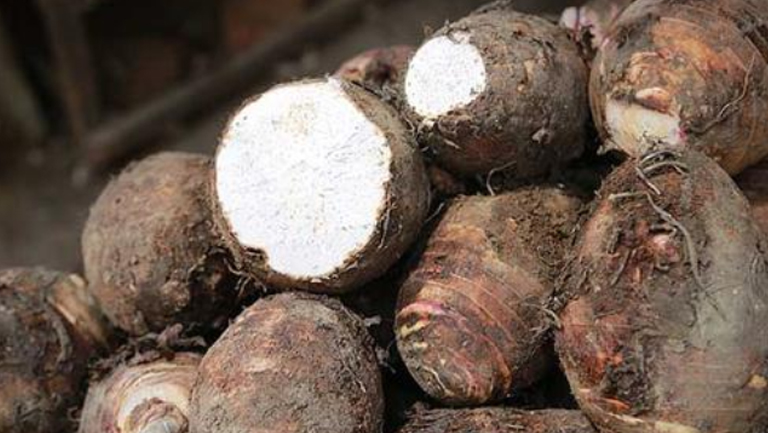 槟榔芋是淀粉含量颇高的优质蔬菜,具有特殊的风味,且营养丰富,含有粗蛋白、淀粉、多种维生素和无机盐等成分。