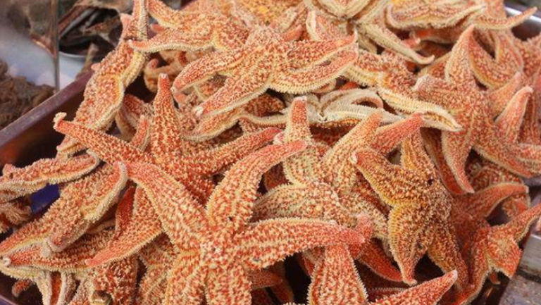 干海星含有大量的蛋白质、氨基酸、不饱和脂肪酸、维生素A、维生素B、钙、铁、磷等常规物质,还含有海星皂苷、海星皂素等具有特殊功效的物质。因为干海星中不饱和脂肪酸的含量比陆地上生长的动物高出很多,适合老年人适量食用,可增强记忆力,健脑益智。