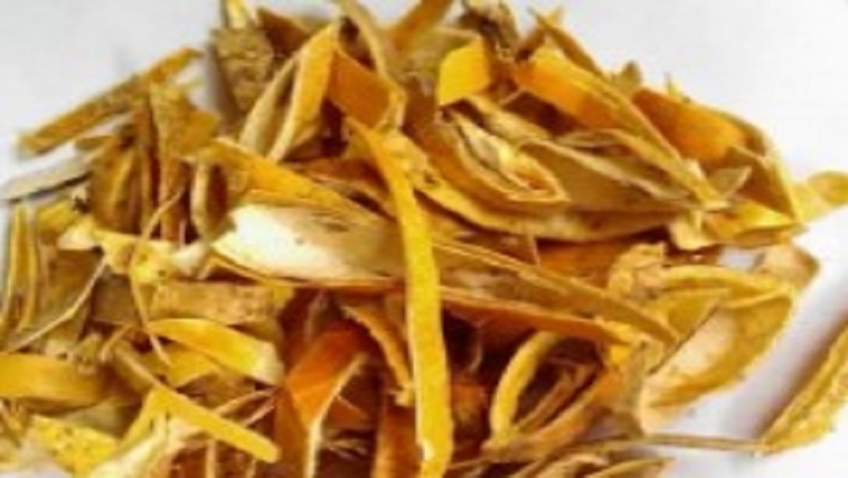 干燥果皮通常卷成筒状,长约6-10厘米,常连有果柄,长约2厘米;果皮很薄,外表面橙黄色,有鲜红斑块及细脉纹, 内表面类白色至暗黄色,常附有未去尽的果肉。质硬而脆。芳香,带辣味。以颜色鲜泽、无果柄者为佳。