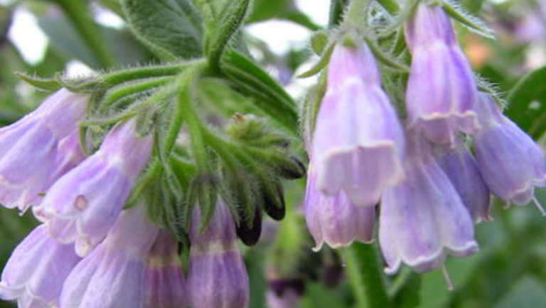 聚合草开花期含粗蛋白质、粗脂肪、粗纤维,还含有大量的尿囊素、维生素B12等。
