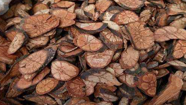 五花血藤秋季采收,洗净,切片,晒干备用。
