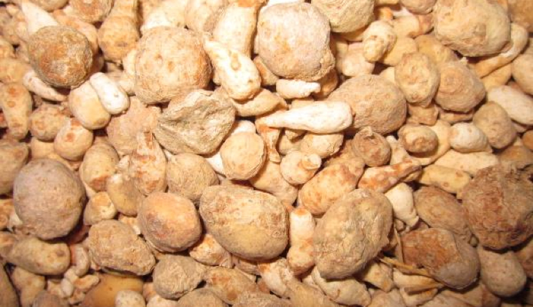 炮制方法:取土半夏用水浸泡,每日换水,直到尝着无麻辣味为度,再用生姜汁或矾水与土半夏共煮,取出后晒干。