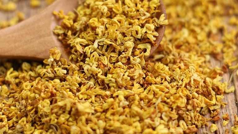 桂花干含有丰富的营养成分,其中含有多种维生素、蛋白质、灰分、粗纤维、钼、硒、钾、钴等对人体有益的微量元素,以及含有挥发油。油中含数十种化合物,主要有罗勒烯、蒎烯、紫罗兰酮、芳樟醇、橙花醇、十六碳酸、二十三烯酸甲酯、牛儿醇、月桂酸、棕榈酸、硬脂酸、辛酸乙酯、十氢萘、对羟基苯乙醇、黄樟油素、异薄荷醇、榄香树脂等。另含齐墩果叶酸、熊果酸、β-谷甾醇等。