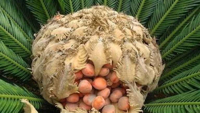 铁树果含有苏铁甙和多种新苏铁甙,还有多量游离的棕榈酸,多量淀粉、β-胡萝卜素、隐黄素、玉蜀黍黄素等色素,日常入药用来止咳化痰、健脾和胃。