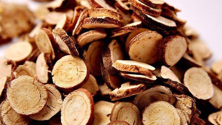 光果甘草含三萜皂苷(甘草皂苷,含量在6%以上)、异黄酮(甘草苷、异甘草苷、芒柄花黄素)、多糖、植物甾醇、香豆素和天冬酰胺。