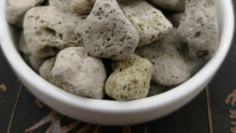 海浮石主要成分为碳酸钙,并含少量镁、锌、铁等元素,尚存在少量晶质硅酸和硅铝酸盐及石英等物质。
