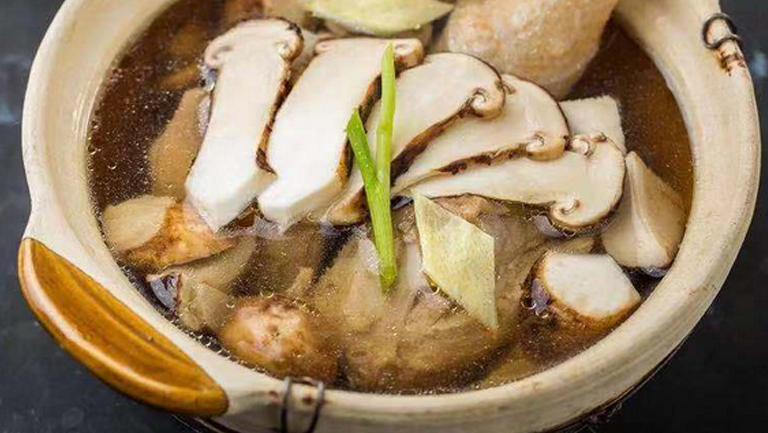 松茸汤中松茸是珍贵的天然药用菌类,含有多糖、甾体、蒽醌类、酚类、鞣质、生物碱、香豆素、油脂、三萜、甾醇、多种必需氨基酸和维生素等。