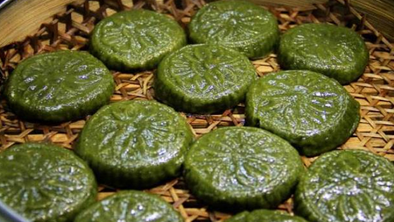 做艾饼时,在艾草放入糯米粉里之前,先过水焯一遍,放少许小苏打,捞起后将艾草放在凉水中过一遍,这样艾草会保持青翠的颜色,做出来的艾饼也是青绿色,色味俱全。