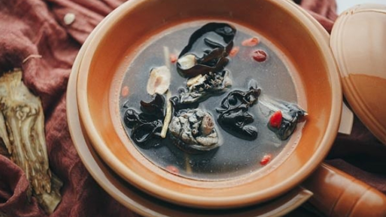当归乌鸡汤中的当归性热,具有活血、补血的功效,饮用当归乌鸡汤可能会使子宫内部血管扩张,从而导致流产,故孕妇应谨慎饮用。