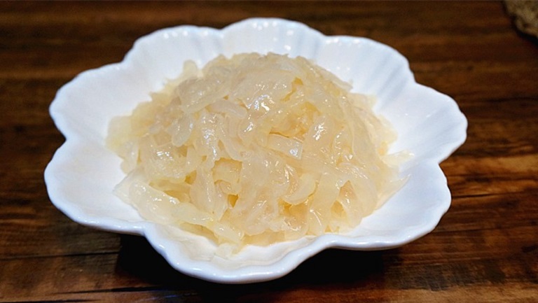 新鲜的海蜇丝须用食盐、明矾腌制后才可以食用。