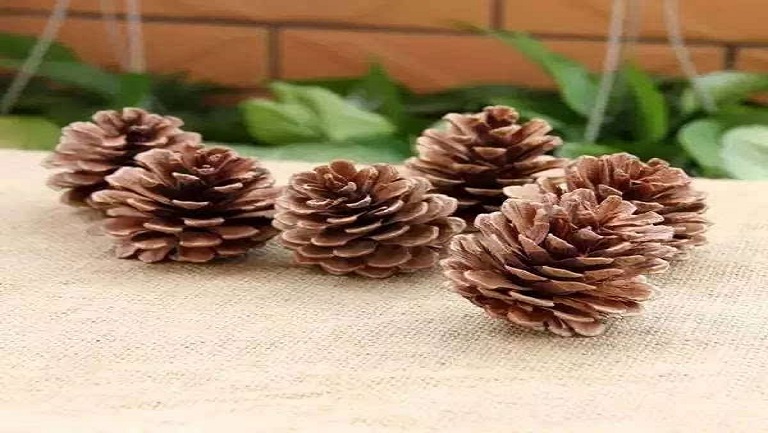 松树塔呈棕褐色,多层鳞片,鳞片间夹着松子。高山松鳞片薄、密,松脂味浓,亚热带松树的松塔鳞片厚、较疏,松香味不明显,新鲜松塔鳞片顶有小刺。
