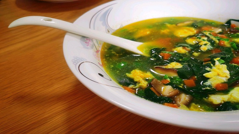 芙蓉蔬菜汤中菠菜含有类胡萝卜素、维生素C、维生素K、粗纤维、蛋白质、胡萝卜素、无机盐、钙、铁、辅酶Q等多种营养素。