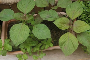 薄荷为唇形科植物薄荷的干燥地上部分,紫苏为唇形科植物紫苏的干燥叶(或带嫩枝),两者均可作药用。其中薄荷味辛、性凉,归肺、肝经,紫苏味辛、性温,归肺、脾经,薄荷与紫苏合用,具有行气、和胃止呕、利咽止咳等功效。