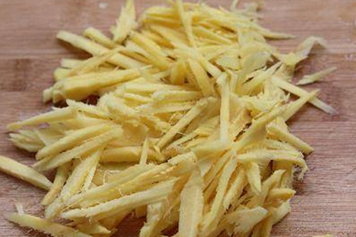 炒生姜为姜科植物姜的新鲜根茎切片炒制而成,生姜味辛而性偏温,归肺、脾、胃经。炒制后的生姜,其辛味将稍微淡化,但仍具有解表散寒、温中止呕、化痰止咳的功效。