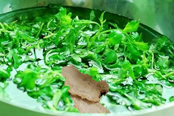 艾叶加当归煮水中,艾叶性温,当归性温而气味俱厚,具有温经化瘀的功效,可以缓解痛经、子宫出血等症。