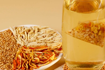 陈皮性温,味辛,可健脾理气、和胃化湿。姜丝性温,味辛,偏于温胃、醒脾、和胃。故炒米陈皮姜丝茶能够和胃止呕。