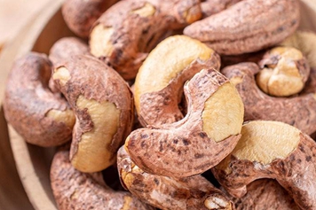 腰果是漆树科腰果属植物的果实,性状类似肾脏。带皮腰果指未去掉果实外衣,具有缓解饥饿、促进排便的功效。